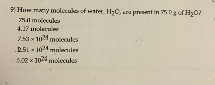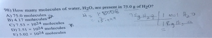 How Many Molecules Of Water H2o Are Present In 75 0 G Of H2o Quora